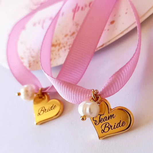 Βραχιόλι για bachelor party με καρδιά "Team Bride" και μαργαριτάρι καλλιέργειας