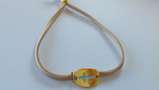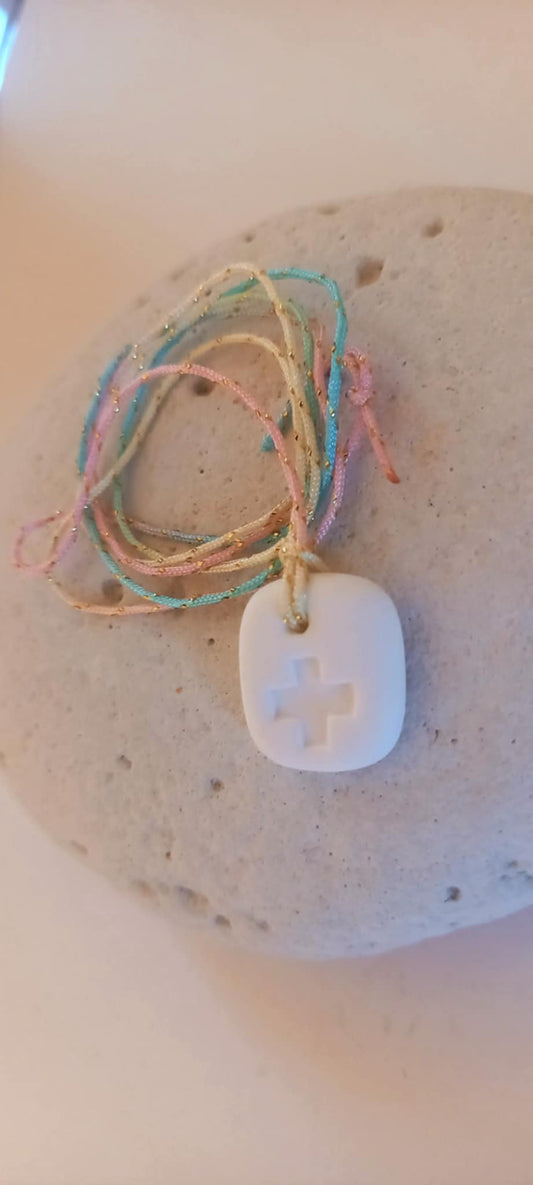 Μαρτυρικό βραχιόλι με κορδόνι και σταυρό με υφή πορσελάνης