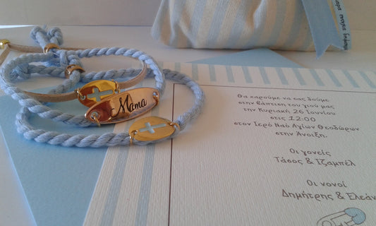 Μαρτυρικό βάπτισης με βαμβακερό σχοινί και σταυρό με σμάλτο