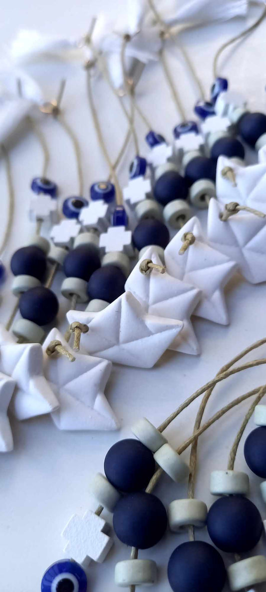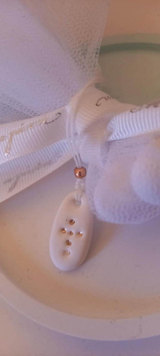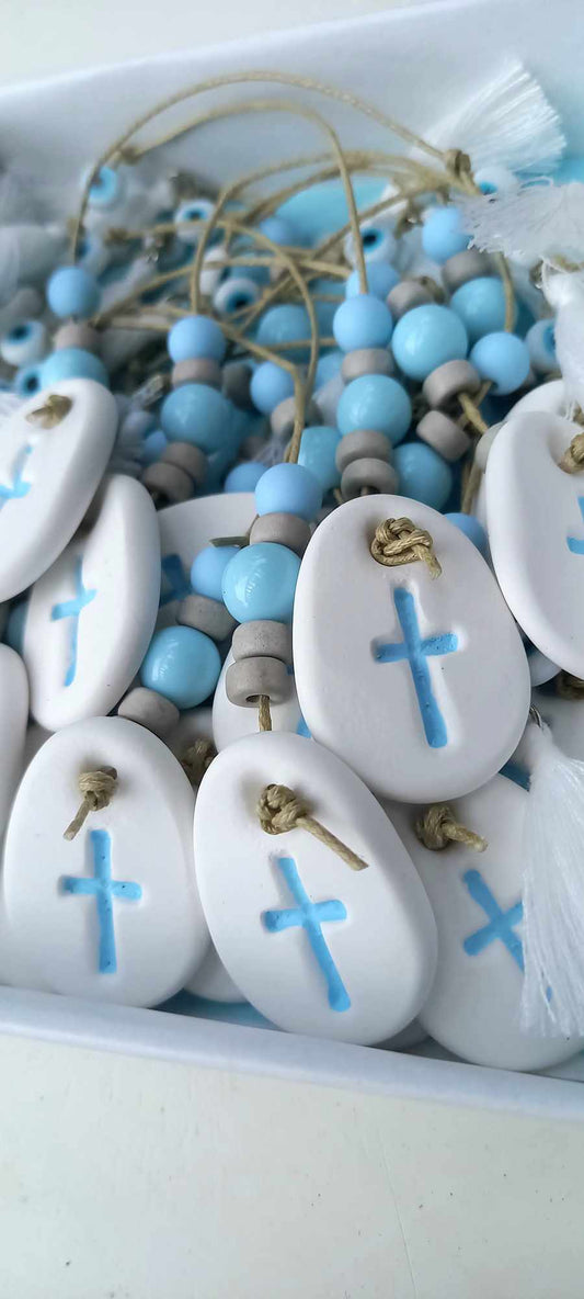 Μαρτυρικό βάπτισης μπεγλέρι με σταυρό και κεραμικές χάντρες