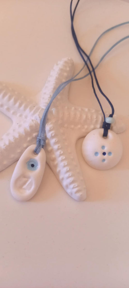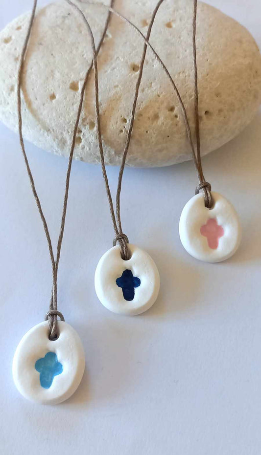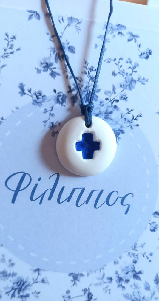 Μαρτυρικό κολιέ με κορδόνι, σταυρό και υφή πορσελάνης
