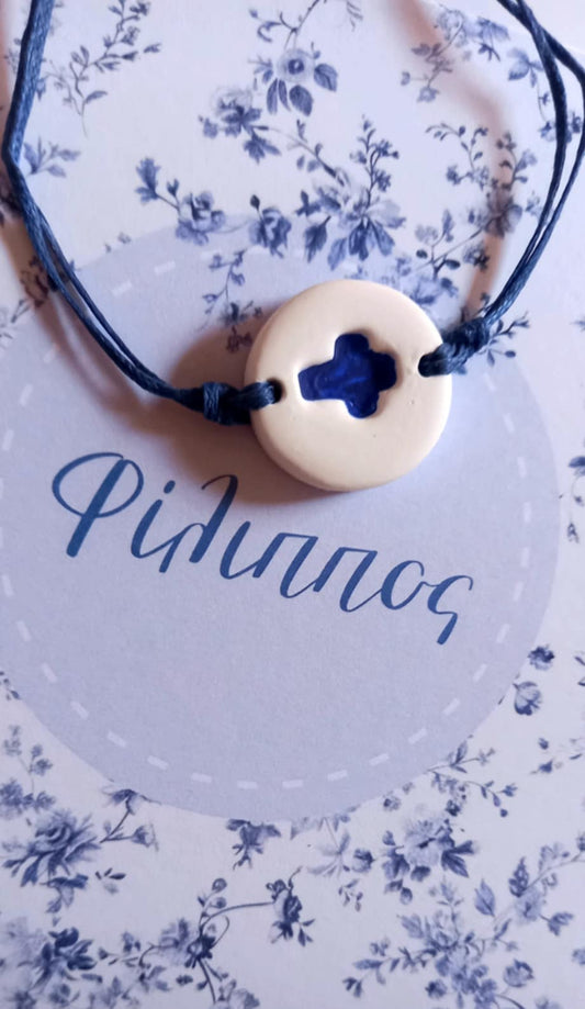 Μαρτυρικό βραχιόλι με υφή πορσελάνης και σταυρό