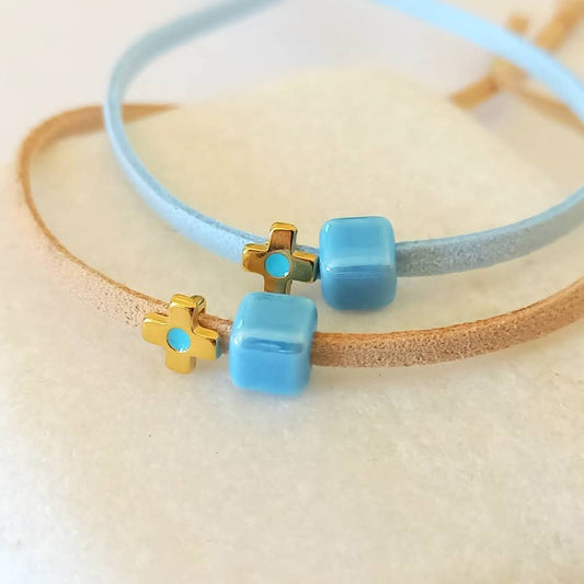 Μαρτυρικό βάπτισης βραχιόλι με κεραμικό σταυρό