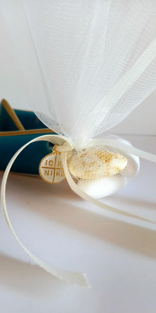 Μπομπονιέρα γάμου κεραμικό καράβι με κωνσταντινάτο φλουρί