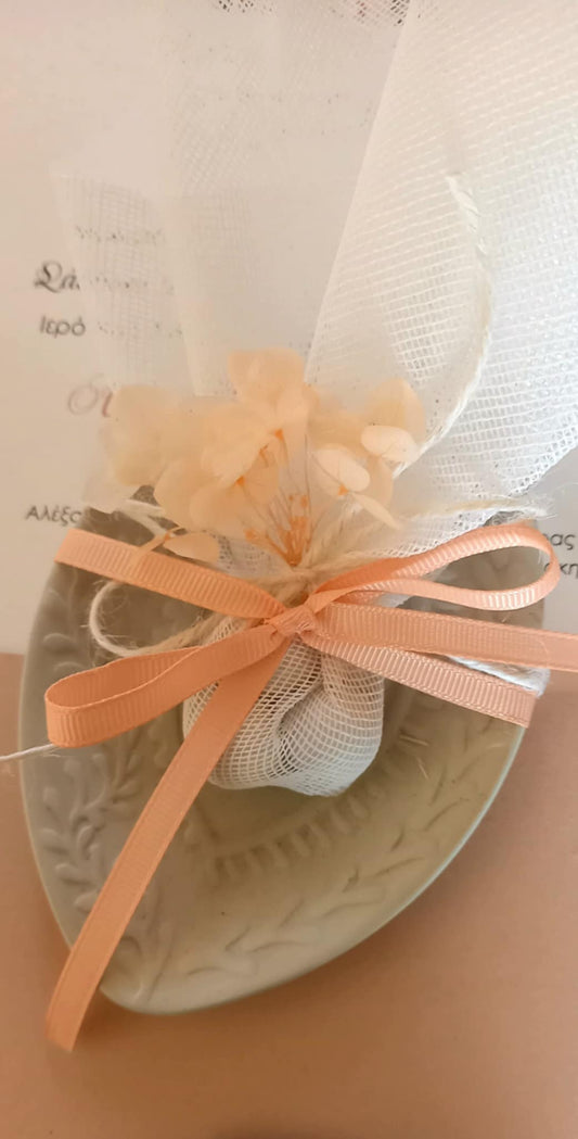 Μπομπονιέρα γάμου - βάπτισης κεραμικό πιατάκι