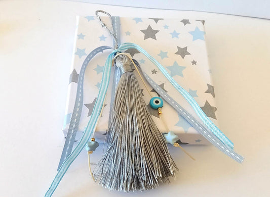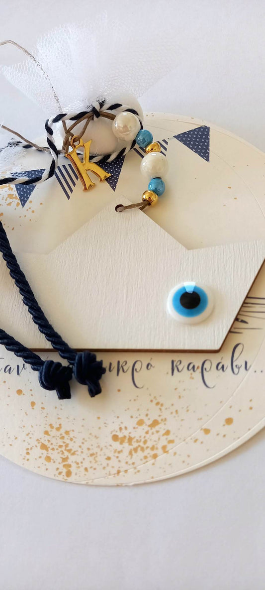 Μπομπονιέρα βάπτισης κουτί με ματάκι, αστεράκια και φούντα