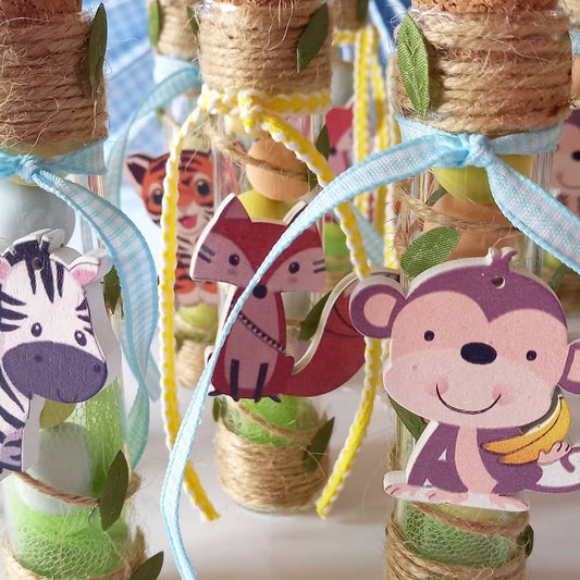 Μπομπονιέρα βάπτισης γυάλινος σωλήνας με ζωάκια της ζούγκλας