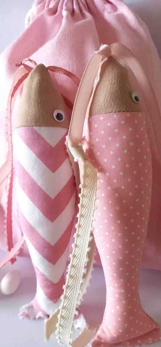 Χειροποίητη μπομπονιέρα βάπτισης ψάρι από ύφασμα