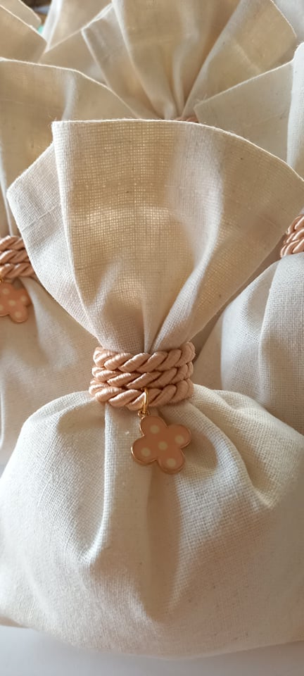Μπομπονιέρα βάπτισης πουγκί με στριφτό κορδόνι και σταυρό