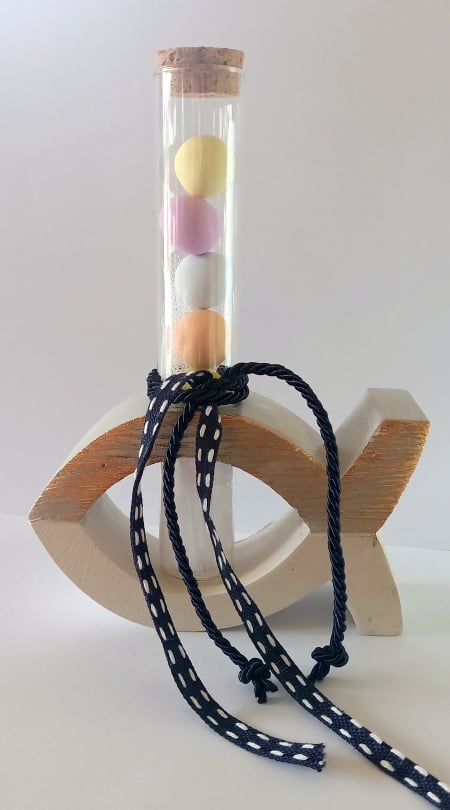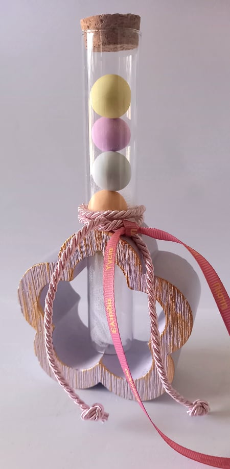 Μπομπονιέρα βάπτισης κεραμικό διακοσμητικό με γυάλινο σωλήνα