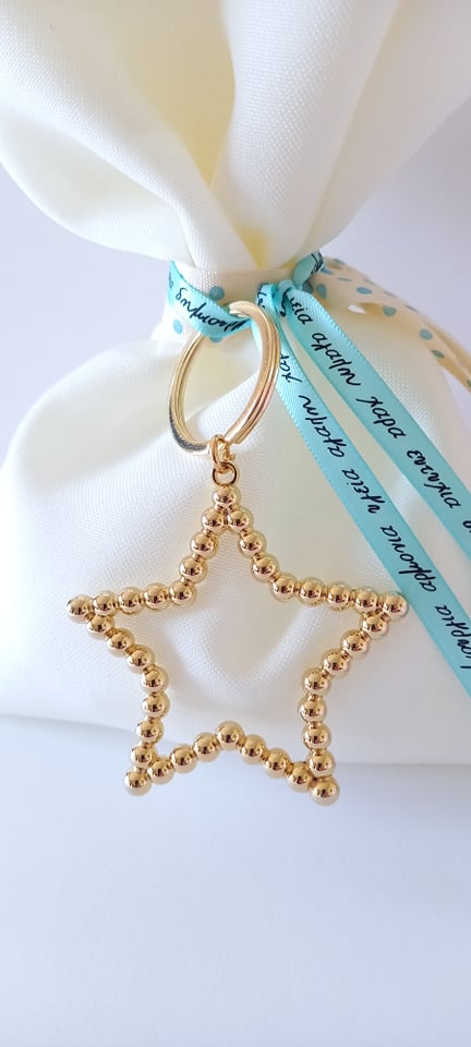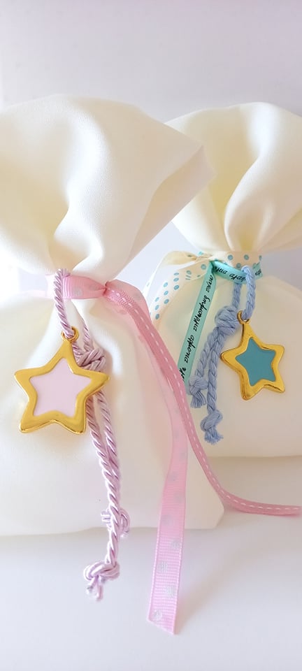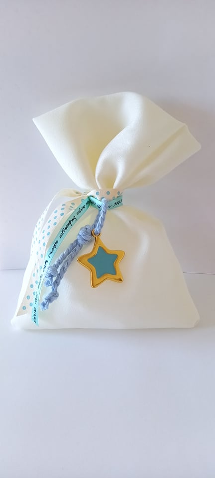 Μπομπονιέρα βάπτισης πουγκί και μπρελόκ με αστέρι
