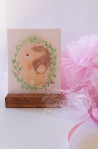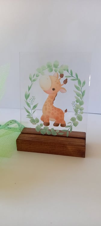 Μπομπονιέρα βάπτισης διακοσμητικό από plexi glass με παράσταση καμηλοπάρδαλη
