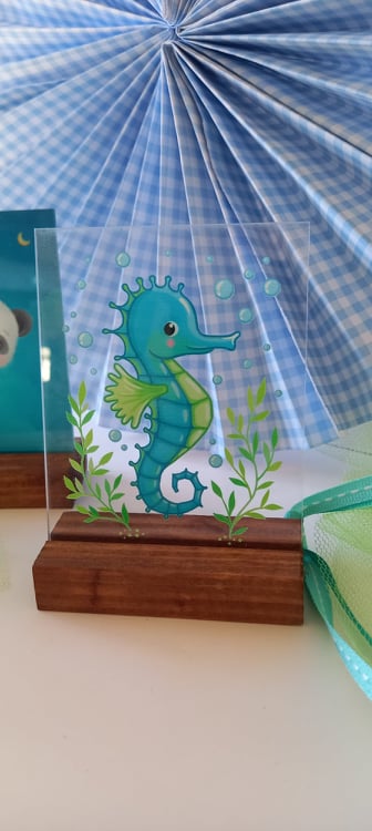Μπομπονιέρα βάπτισης διακοσμητικό από plexi glass με ιππόκαμπο