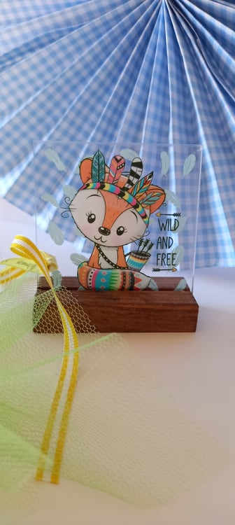 Μπομπονιέρα βάπτισης με διακοσμητικό από plexi glass με αλεπού