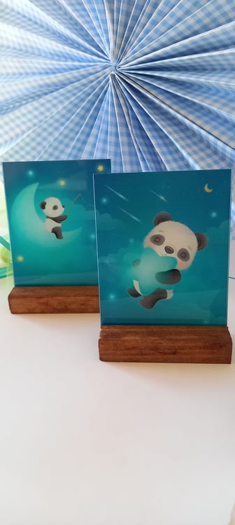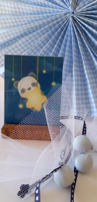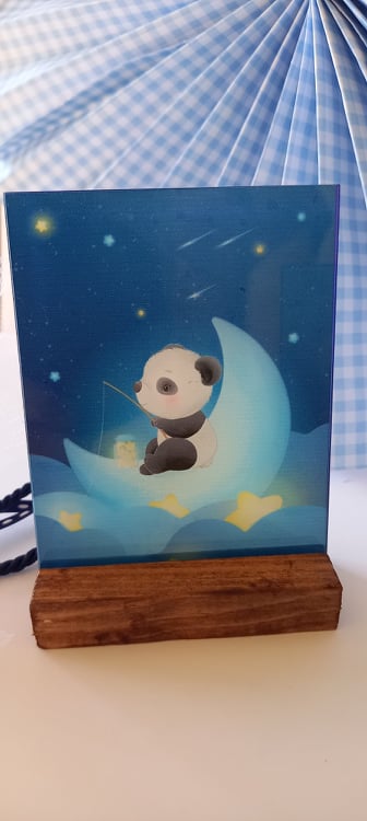 Μπομπονιέρα βάπτισης διακοσμητικό από plexi glass με panda και φεγγαράκι