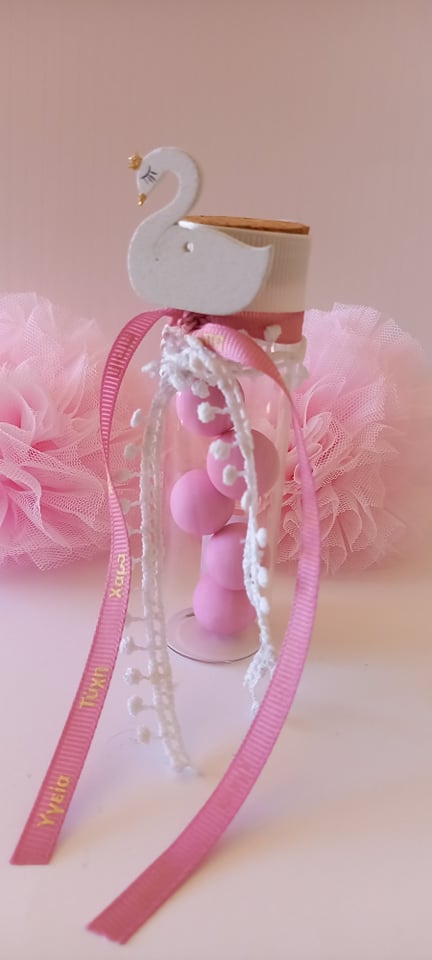 Μπομπονιέρα βάπτισης γυάλινος σωλήνας με κύκνο