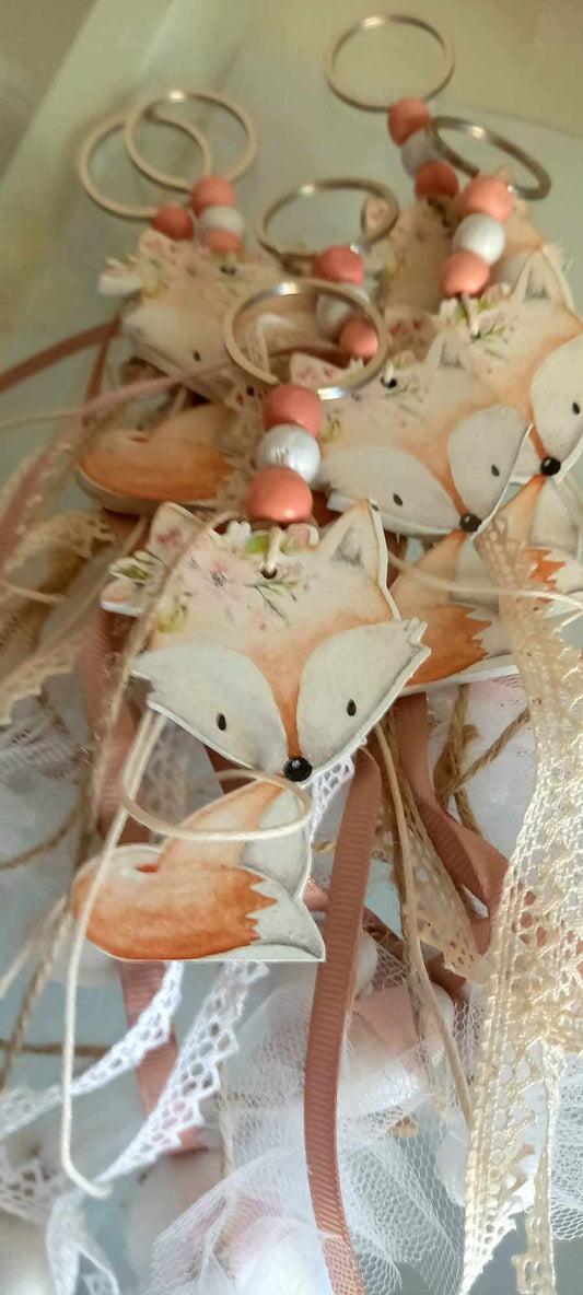 Μπομπονιέρα βάπτισης με μπρελόκ ξύλινη αλεπού