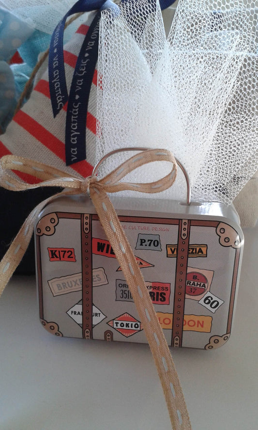 Μπομπονιέρα βάπτισης μεταλλικό βαλιτσάκι