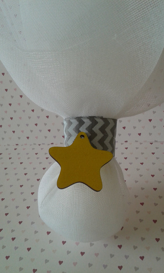 Μπομπονιέρα με ξύλινο αστέρι και γάζα