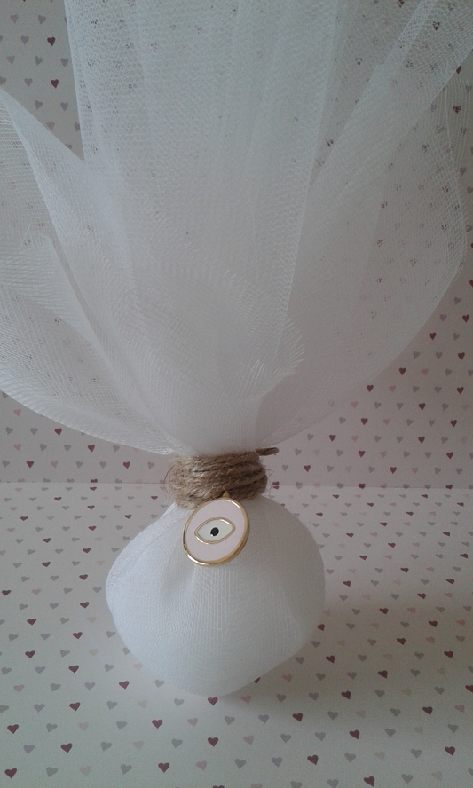 Μπομπονιέρα βάπτισης με γάζα και μάτι με σμάλτο