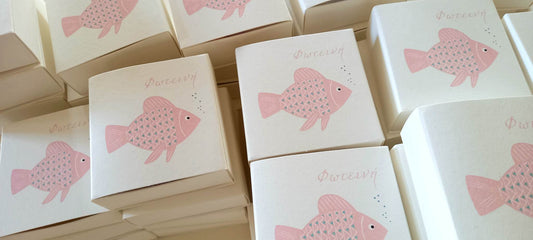 Μπομπονιέρα βάπτισης - κουτάκι με εκτύπωση και χρυσοτυπία