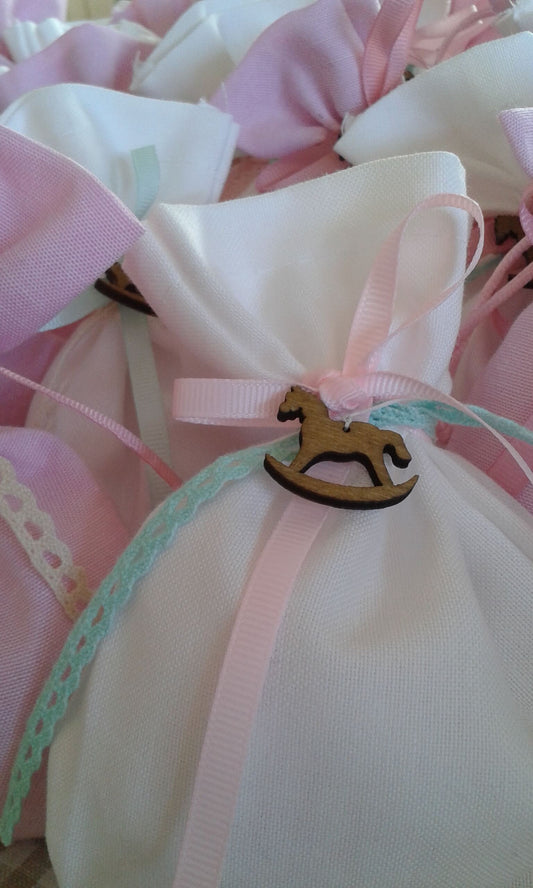Μπομπονιέρα βάπτισης πουγκί με ξύλινο αλογάκι