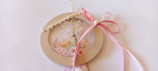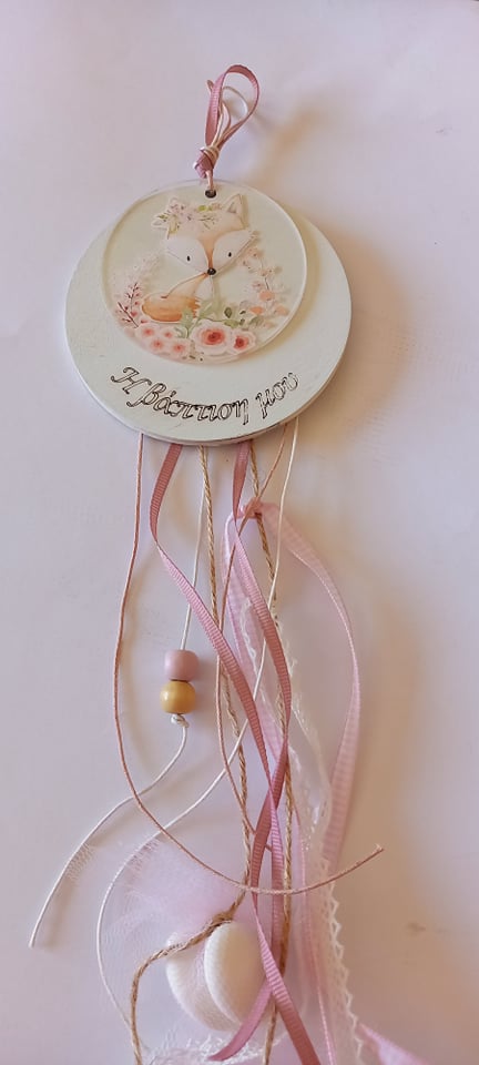 Μπομπονιέρα βάπτισης ξύλινο στοιχείο με παράσταση αλεπού