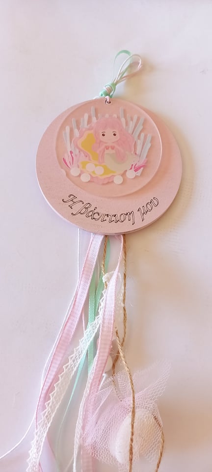 Μπομπονιέρα βάπτισης ξύλινη γοργόνα