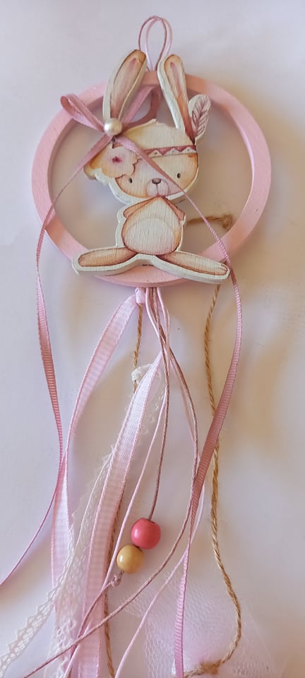 Μπομπονιέρα βάπτισης ξύλινο στοιχείο με λαγουδάκι