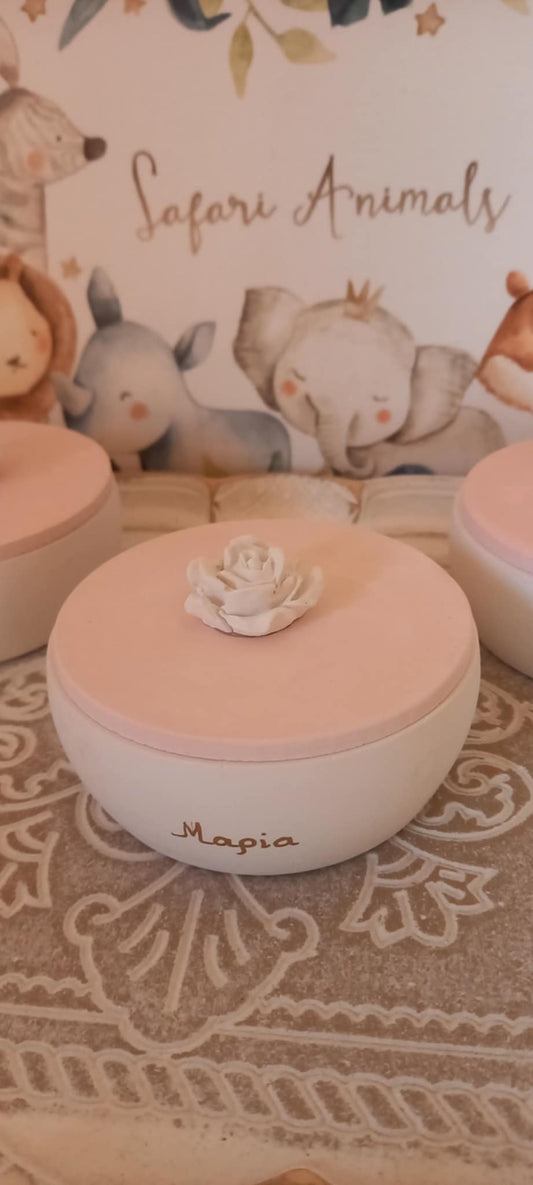 Μπομπονιέρα βάπτισης μπιζουτιέρα με λουλούδι και όνομα