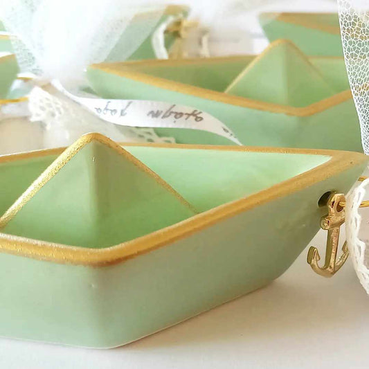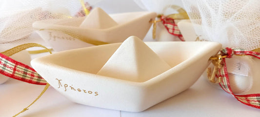 Μπομπονιέρα γάμου - βάπτισης καραβάκι με υφή πορσελάνης