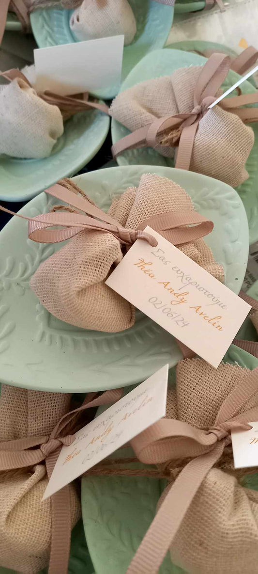 Μπομπονιέρα βάπτισης πιατάκι με ανάγλυφο σχέδιο