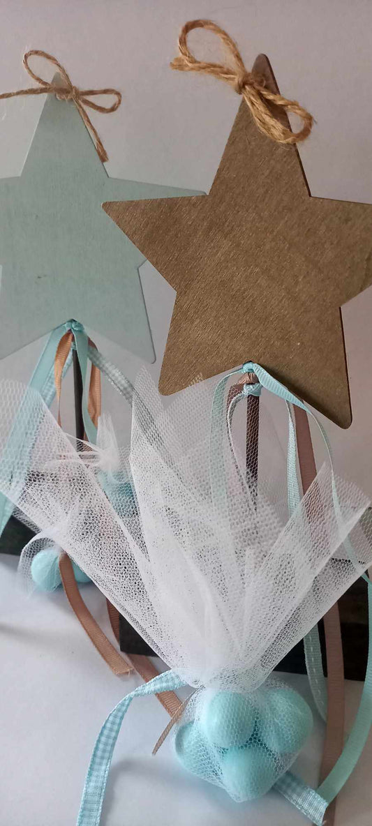 Μπομπονιέρα βάπτισης ξύλινο αστέρι σε σταντ
