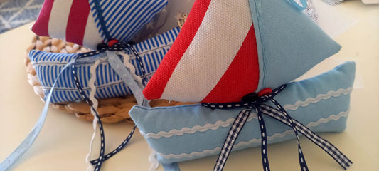 Μπομπονιέρα βάπτισης καραβάκι από ύφασμα