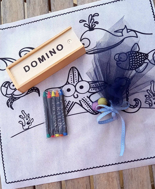 Παιδική μπομπονιέρα βάπτισης πουγκί με δραστηριότητες