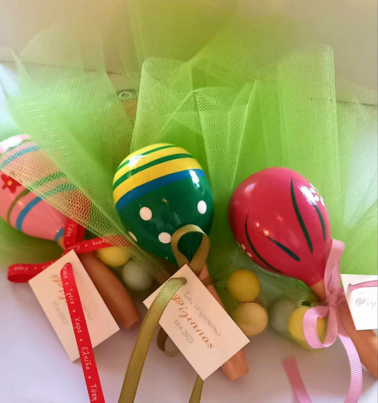 Παιδική μπομπονιέρα βάπτισης ξύλινες μαράκες