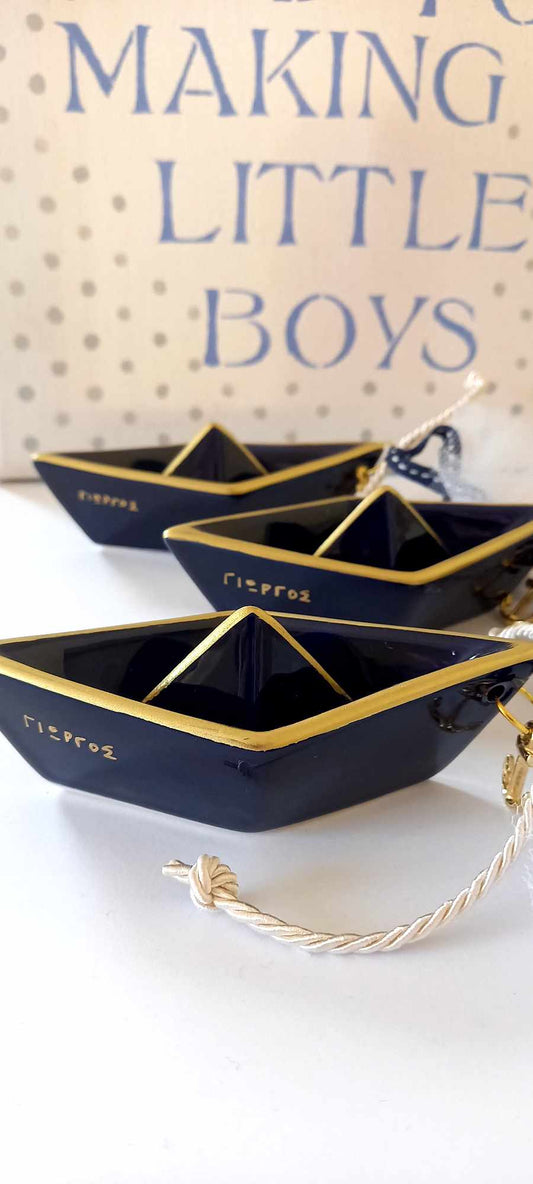 Μπομπονιέρα βάπτισης κεραμικό καράβι με όνομα