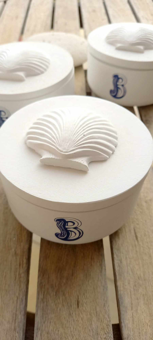 Μπομπονιέρα βάπτισης μπιζουτιέρα με αχιβάδα και μονόγραμμα
