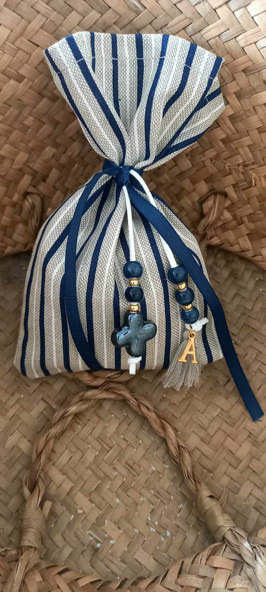 Μπομπονιέρα βάπτισης πουγκί με διακοσμητικό μπεγλέρι