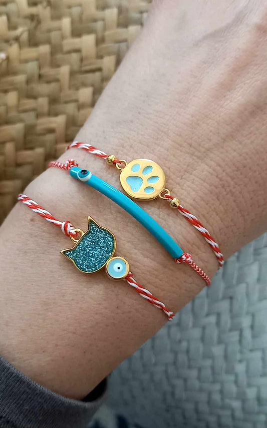 Βραχιόλι μαρτάκι με στοιχείο γατούλα και μάτι
