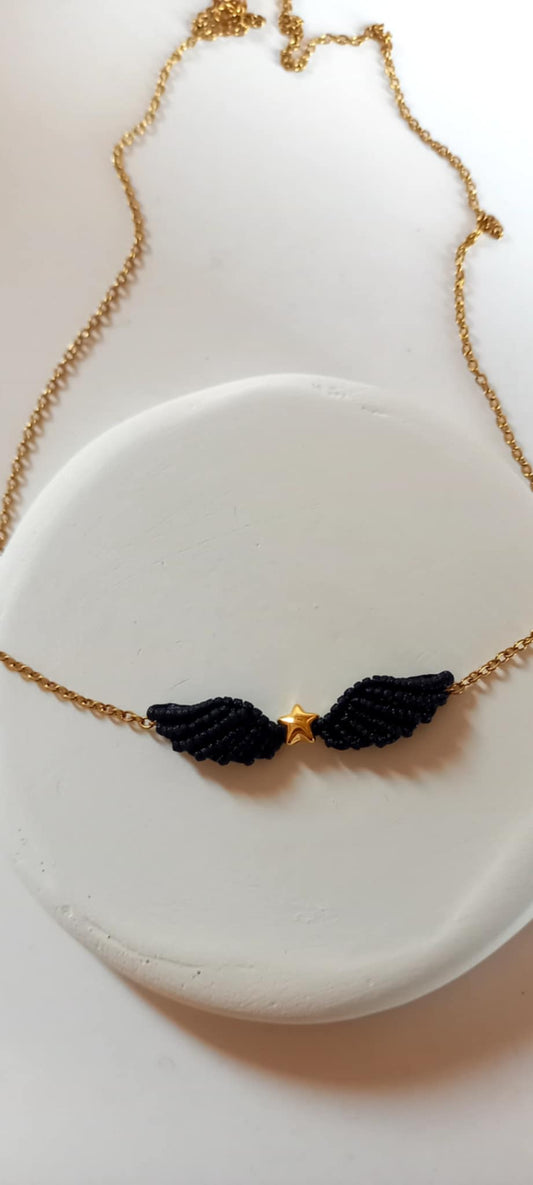 Κολιέ με μακραμέ φτερό αγγέλου και αστέρι