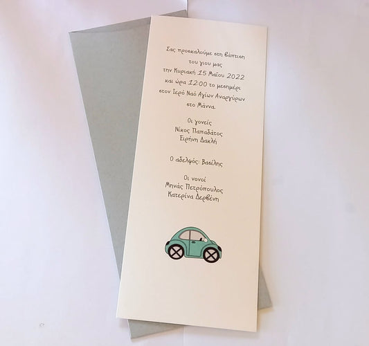 Προσκλητήριο βάπτισης με αυτοκινητάκι