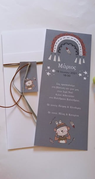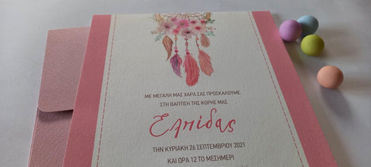 Προσκλητήριο βάπτισης με ονειροπαγίδα