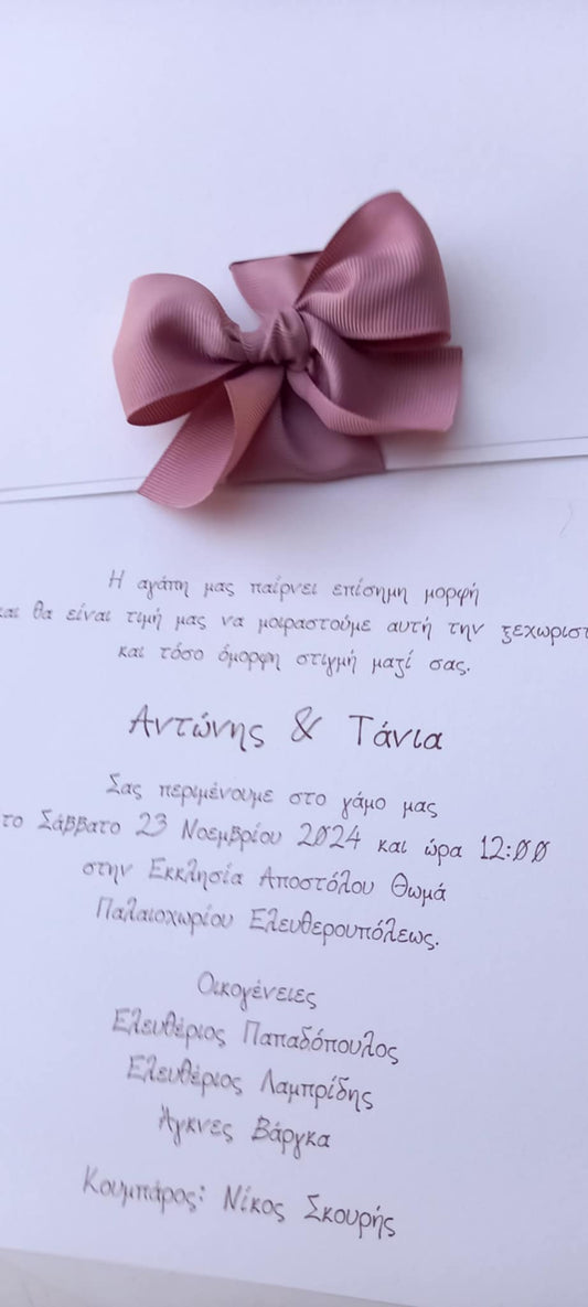 Προσκλητήριο γάμου - βάπτισης με φιόγκο