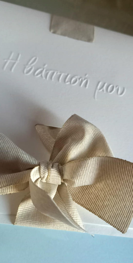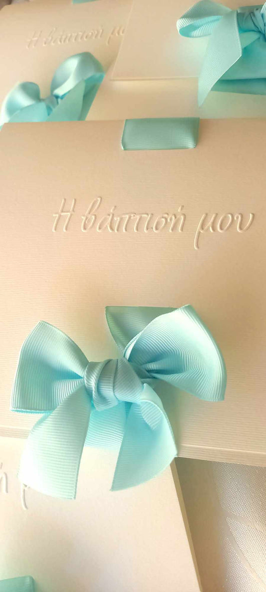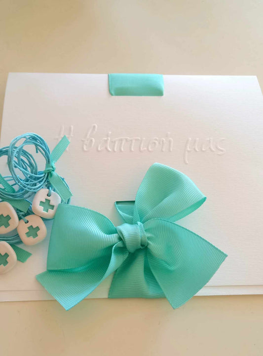 Προσκλητήριο βάπτισης με κορδέλα και ανάγλυφη εκτύπωση