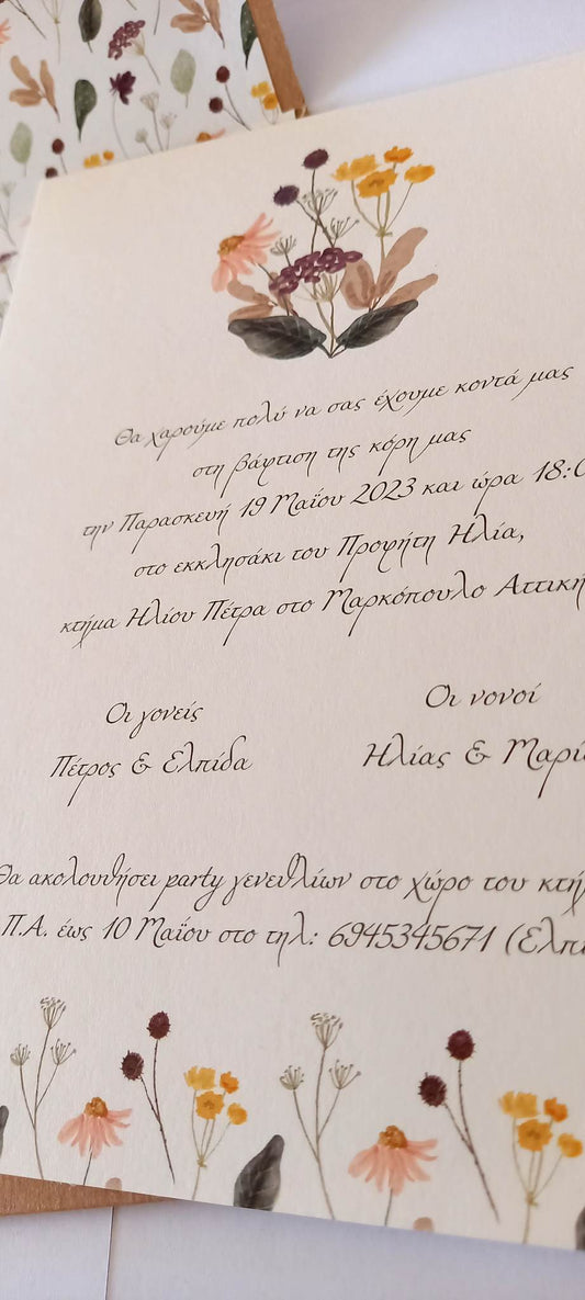 Προσκλητήριο βάπτισης σε ρομαντικό ύφος με λουλούδια