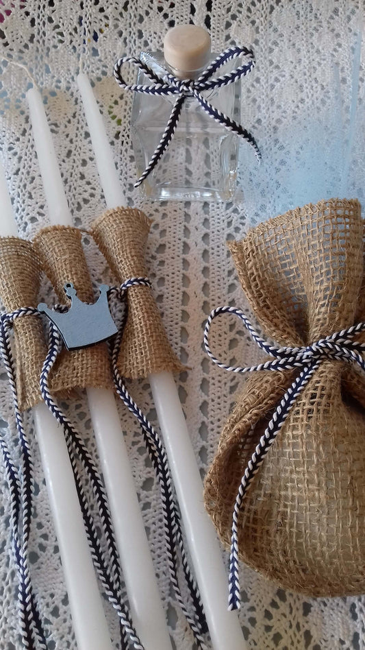 Σετ λαδιού βάπτισης για αγόρι με ξύλινη κορώνα