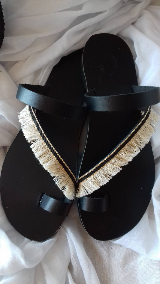 Χειροποίητα δερμάτινα γυναικεία σανδάλια με κρόσια