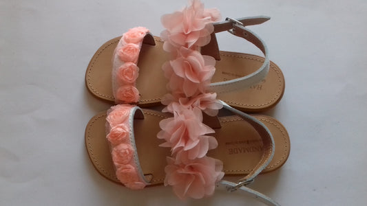 Χειροποίητα δερμάτινα παιδικά πέδιλα με λουλούδια