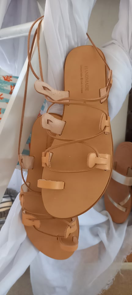 Χειροποίητα δερμάτινα αρχαιοελληνικά σανδάλια με κορδόνι